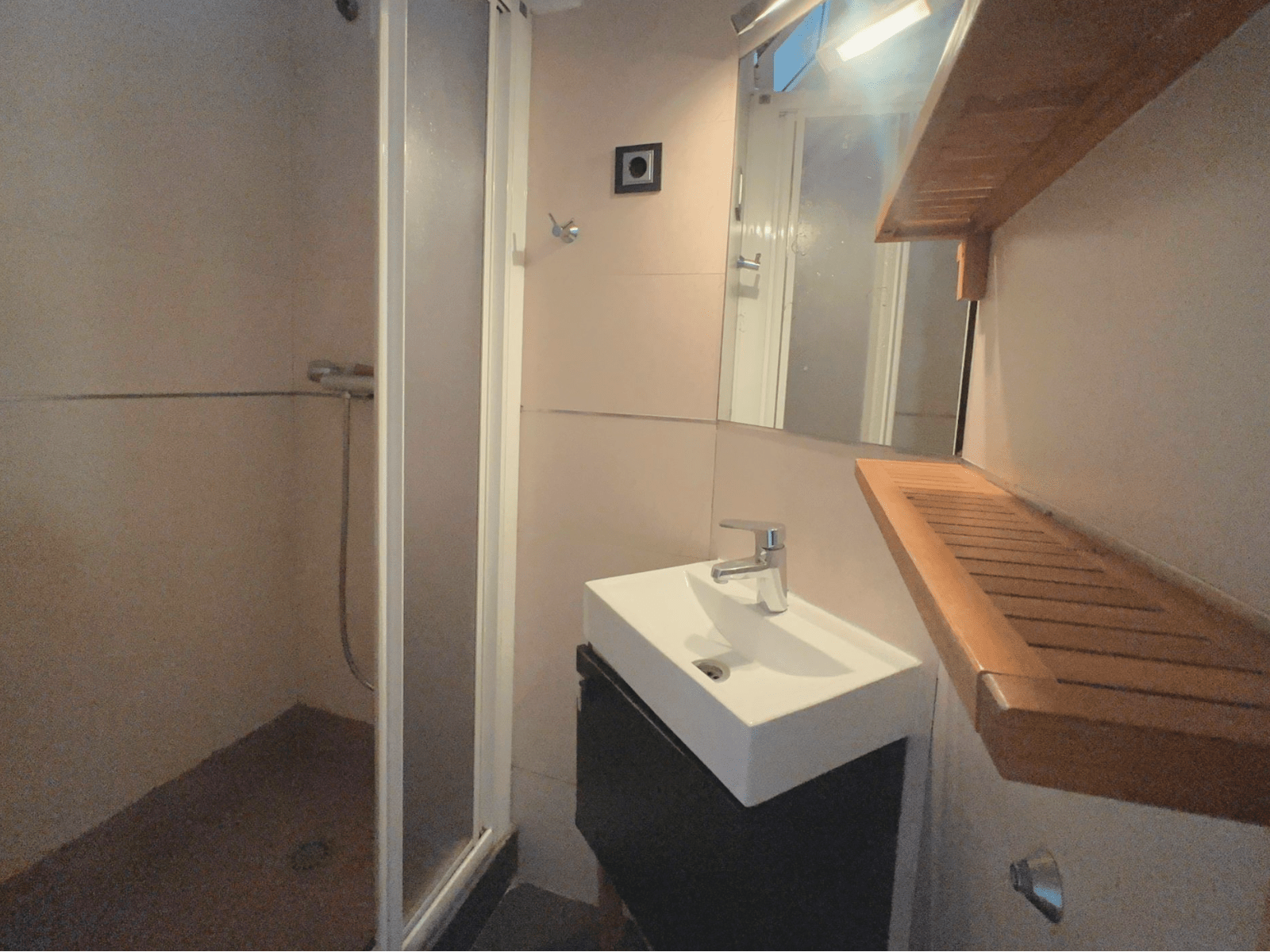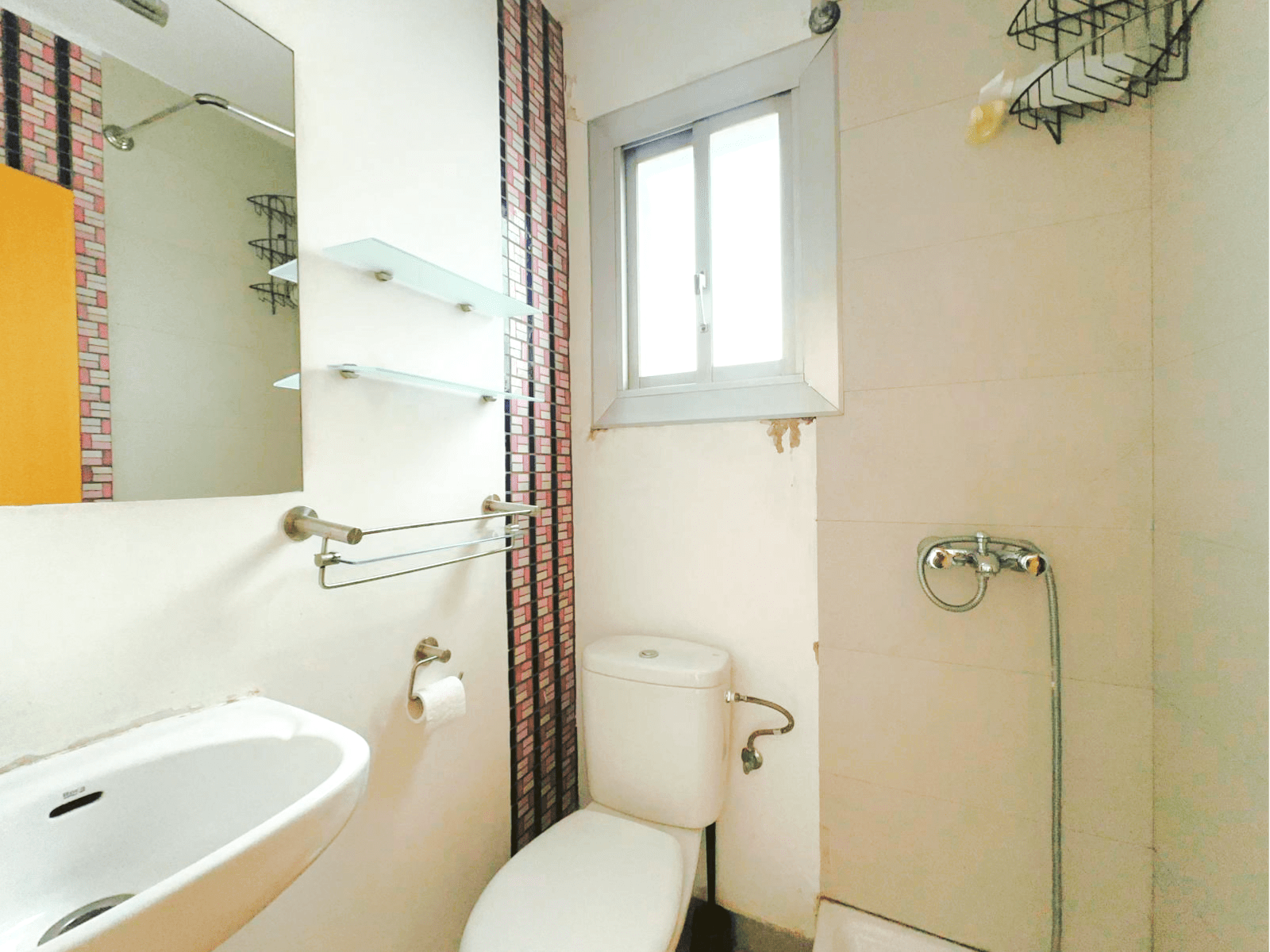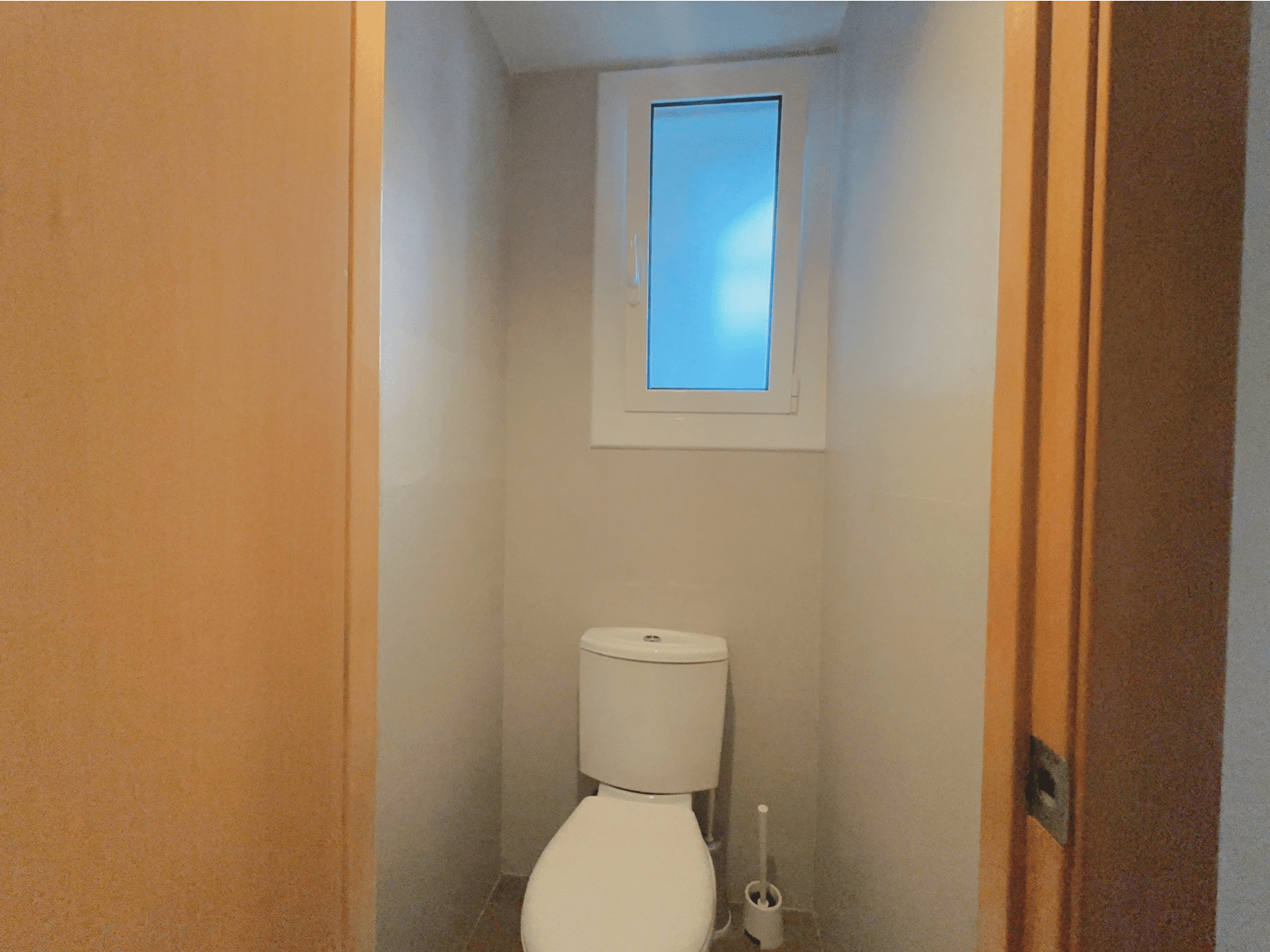 El baño principal esta separado en dos zonas: una para la ducha y el lavadero, y otra distinta para el inodoro (WC).