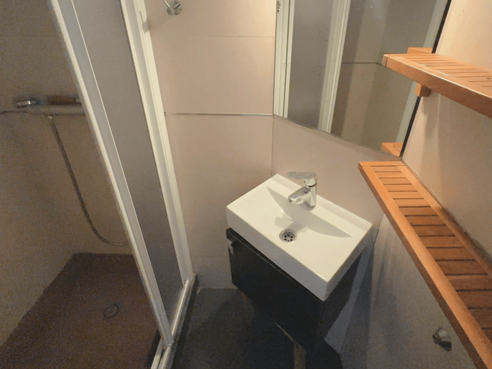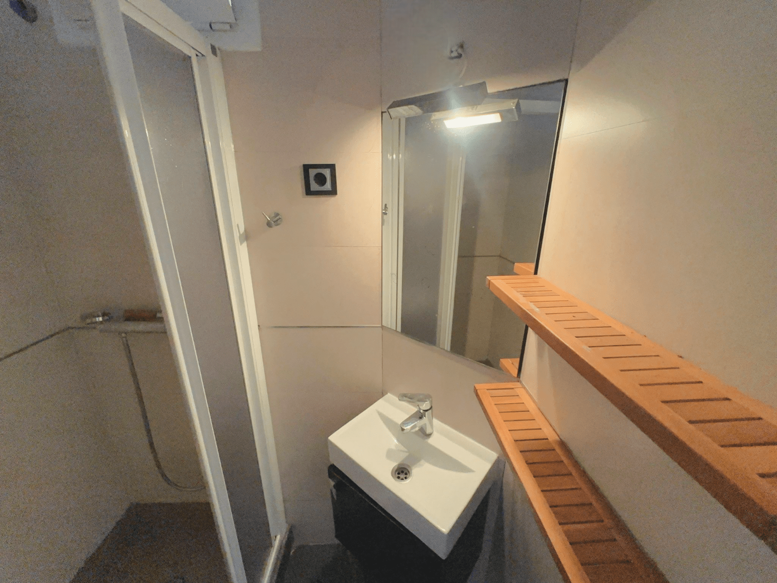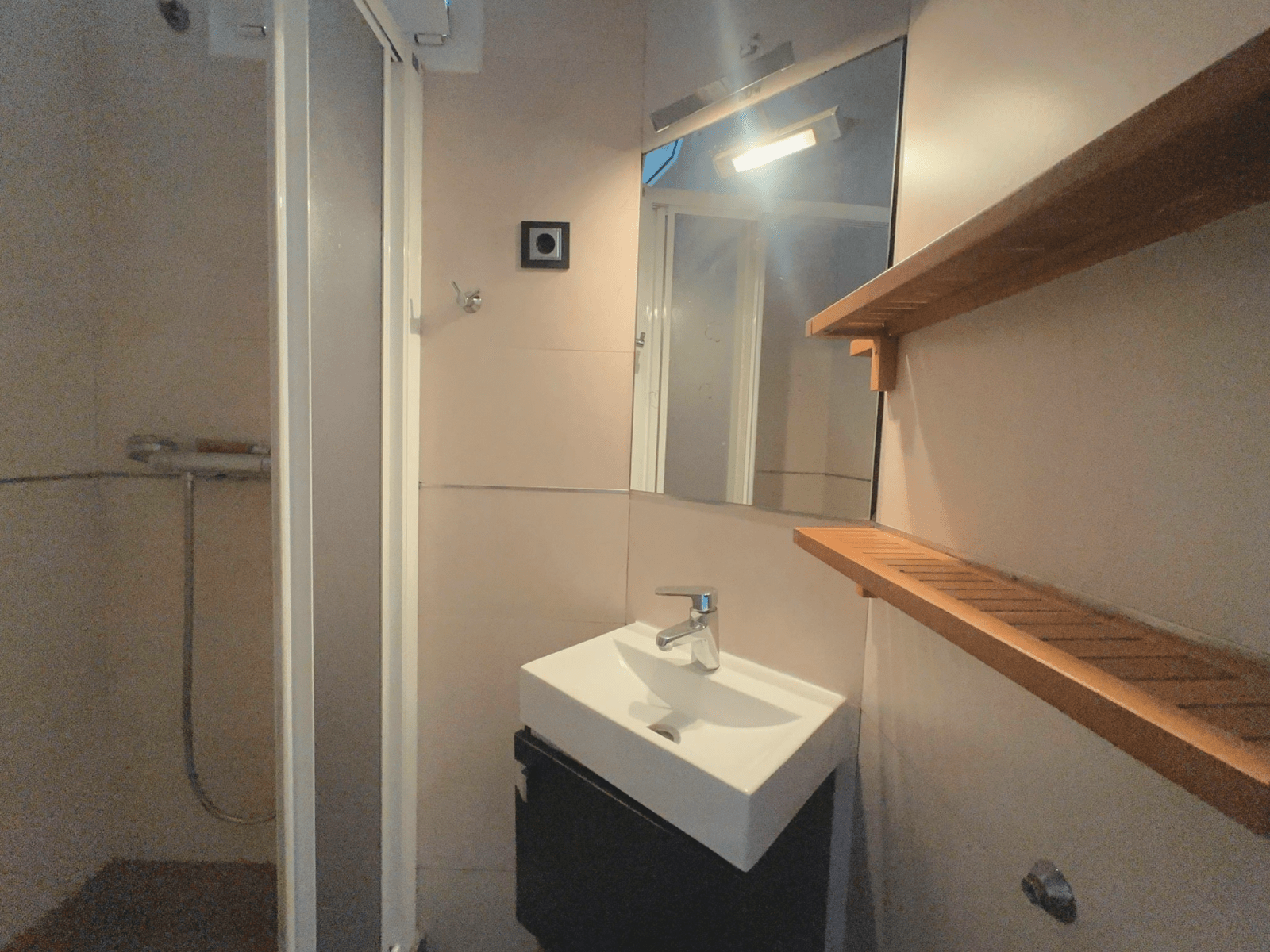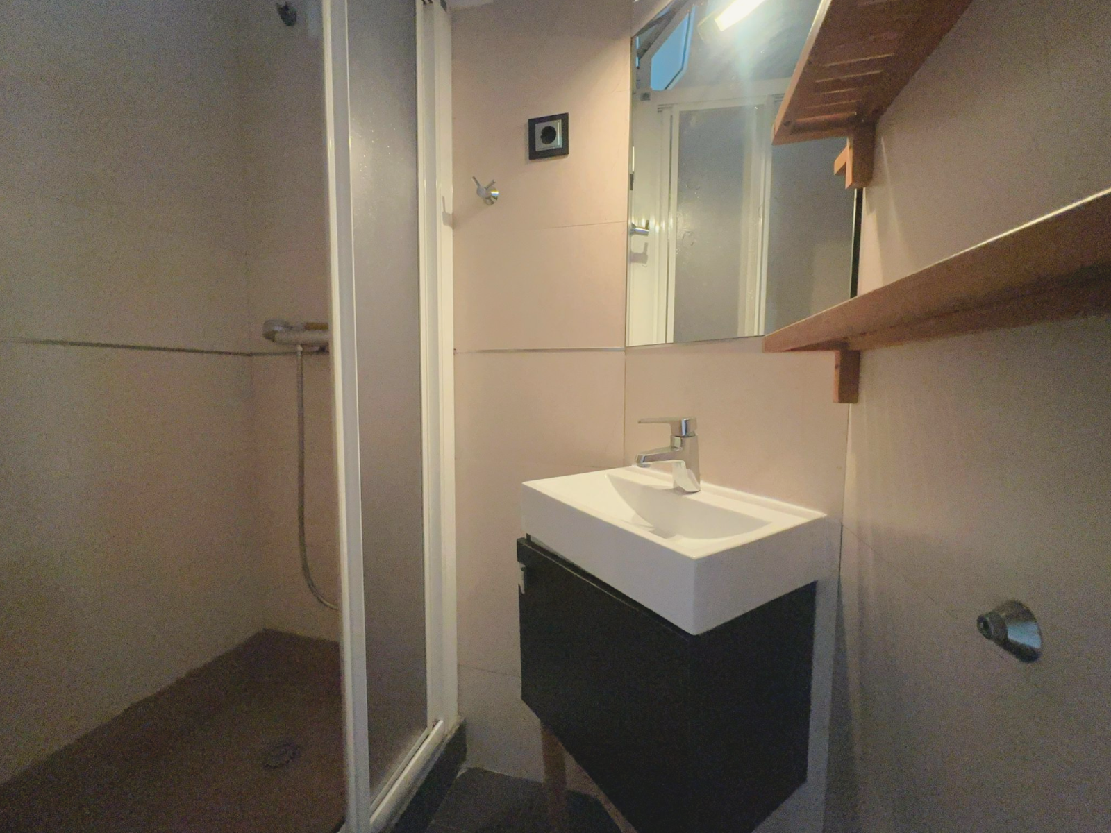 El baño principal esta separado en dos zonas: una para la ducha y el lavadero, y otra distinta para el inodoro (WC).