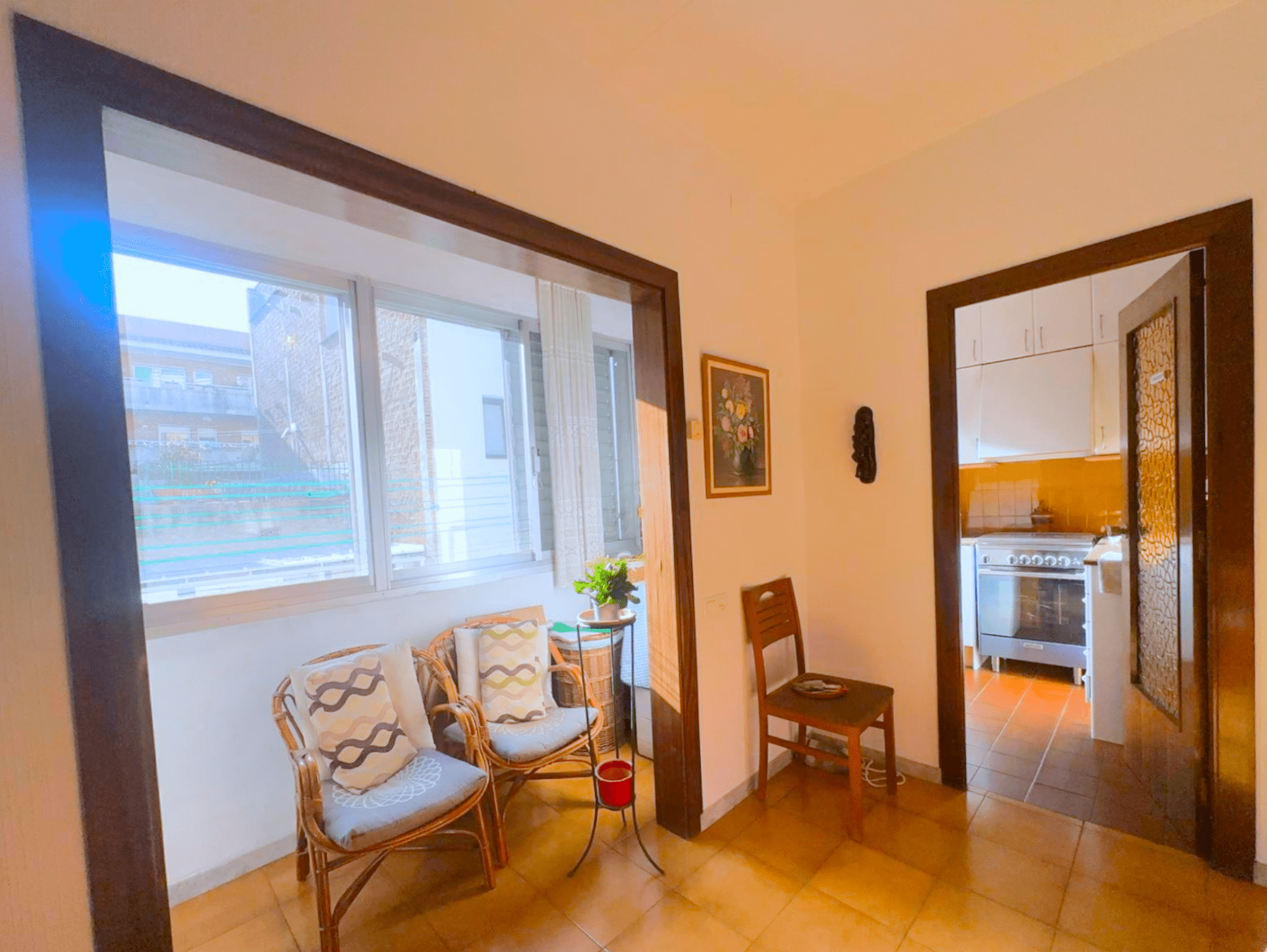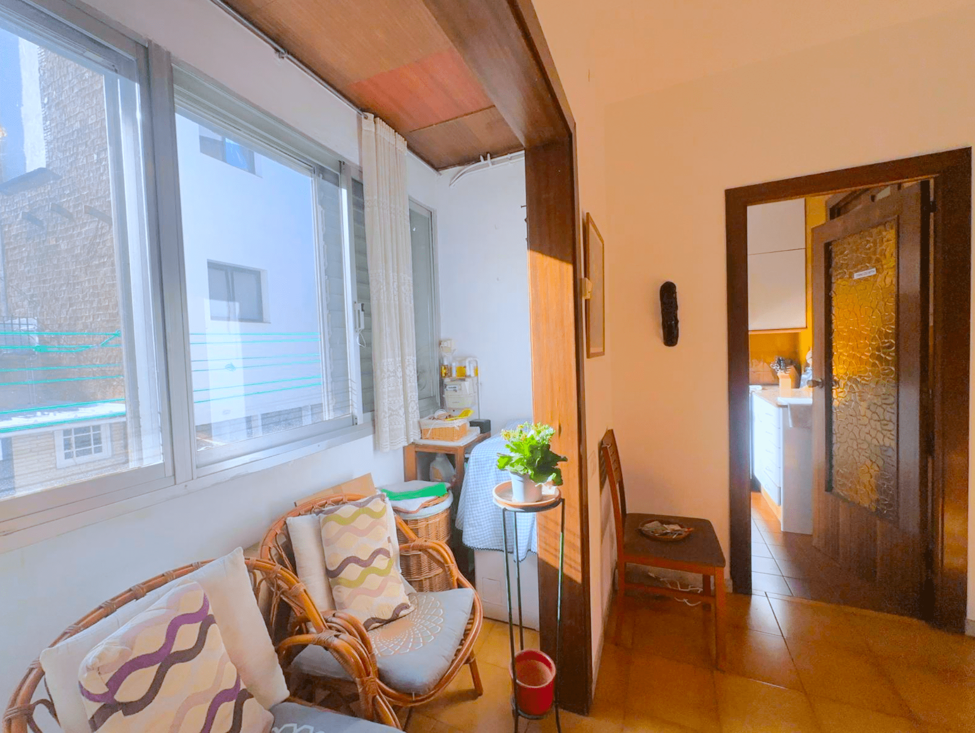 Descubra esta encantadora vivienda con orientación este, ideal para parejas o familias que buscan un hogar con carácter y posibilidades de personalización en una zona tranquila. El piso goza de luz natural por las mañanas, la cual entra a través de la galería y se filtra hacia el salón, creando un ambiente acogedor.